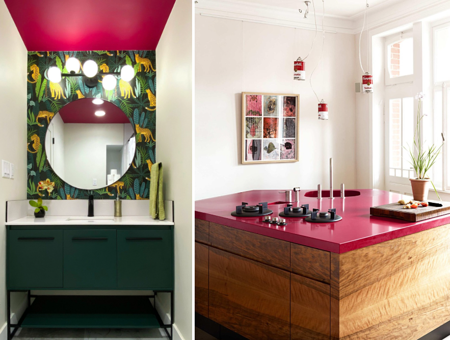 비바마젠타는 다양한 재료나 질감으로 결합해서 최대한 활용할 수 있습니다. 과감하게 인테리어 디자인을 완성하려면 전체적으로 페인팅을 해서 스타일링을 할 수 있겠죠?